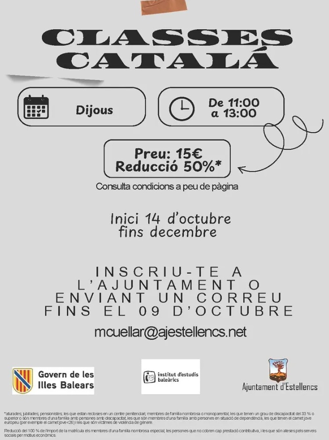 Inscripcions a l'Ajuntament o per correu electrònic fins el 09 d'octubre.